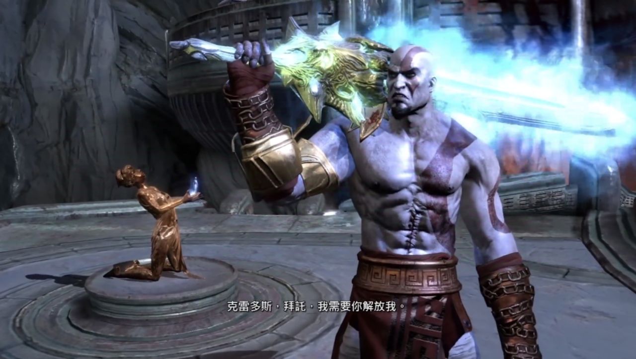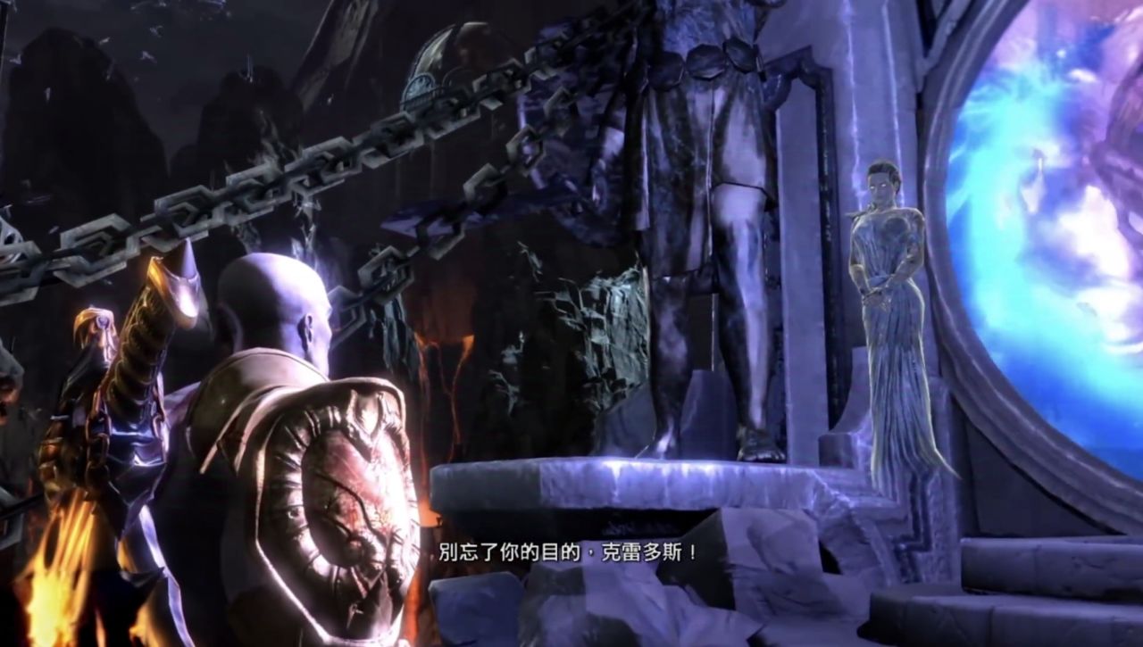 憑藉自己的“聰明才智”闖過數個機關後,奎託斯終於在一處大殿找到了奧林匹斯聖火以及被聖火包裹的潘多拉魔盒,正當他準備直接用手觸碰聖火時,一隻手攔住了他,奎爺視線緩緩移,竟發現靈魂狀態的雅典娜不知爲何也在這裏。之後雅典娜告訴他的話無非就是潘多拉魔盒的來歷以及熄滅聖火需要找到女孩潘多拉之類的老生常態,這裏就不過多贅述了。