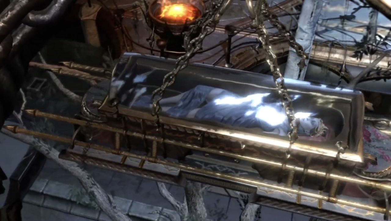 一波發育終於六神裝的奎爺一路殺到了此行的目的地———冥王哈迪斯的神殿,此時空蕩蕩的主殿中空無一人,唯有裝着冥後珀耳塞福涅屍體的棺材懸掛在中央(外傳中被奎爺殺的,具體的下期我們再講)。看着眼前的景象奎託斯心中也已瞭然,合着哈迪斯是打算在這把新仇舊怨一起算了!