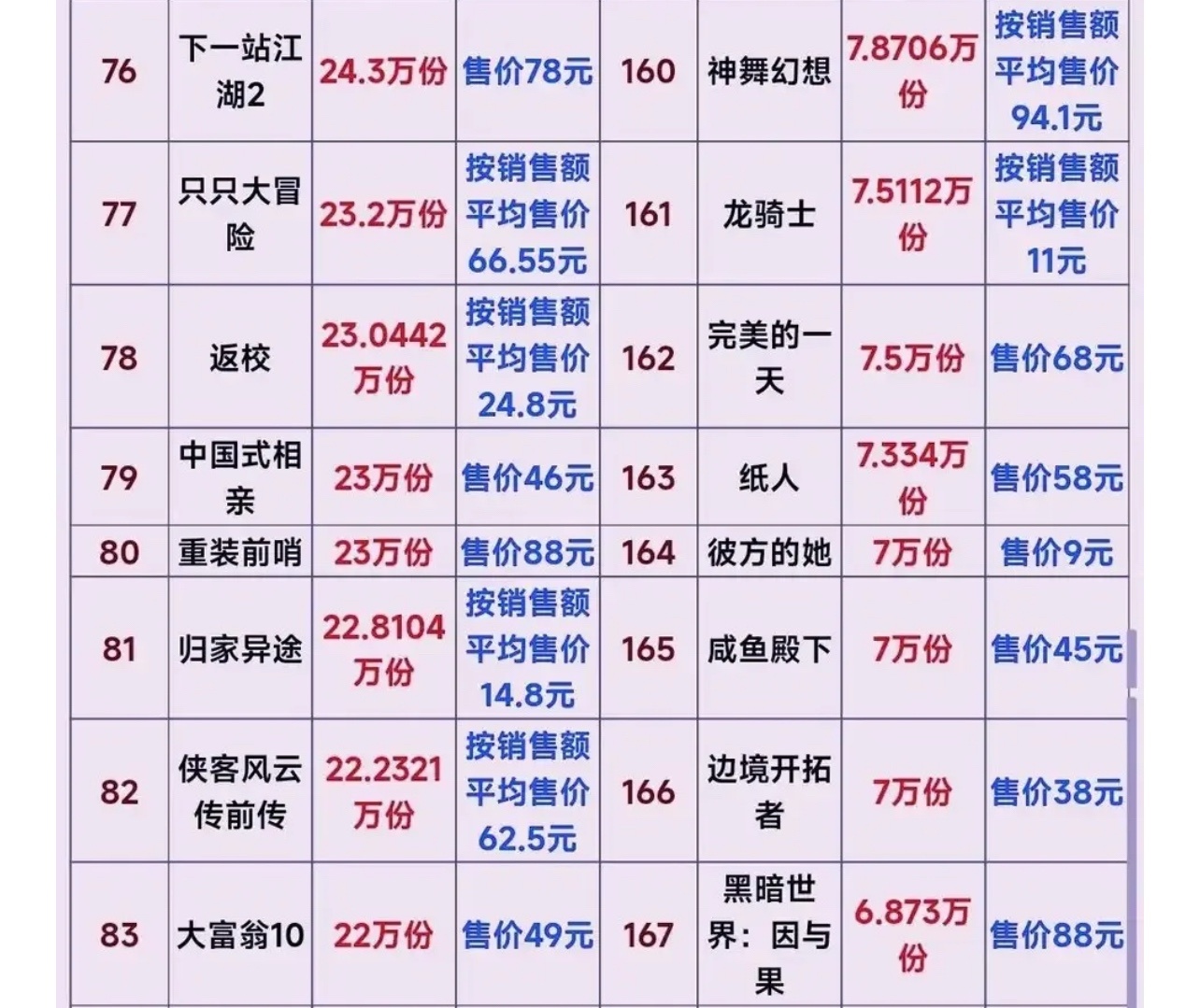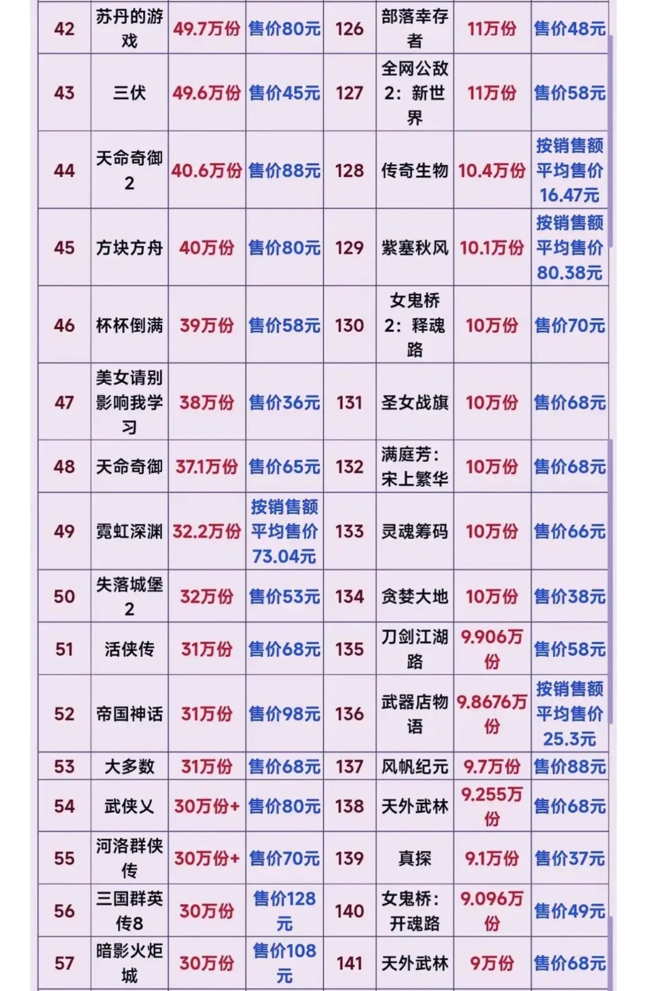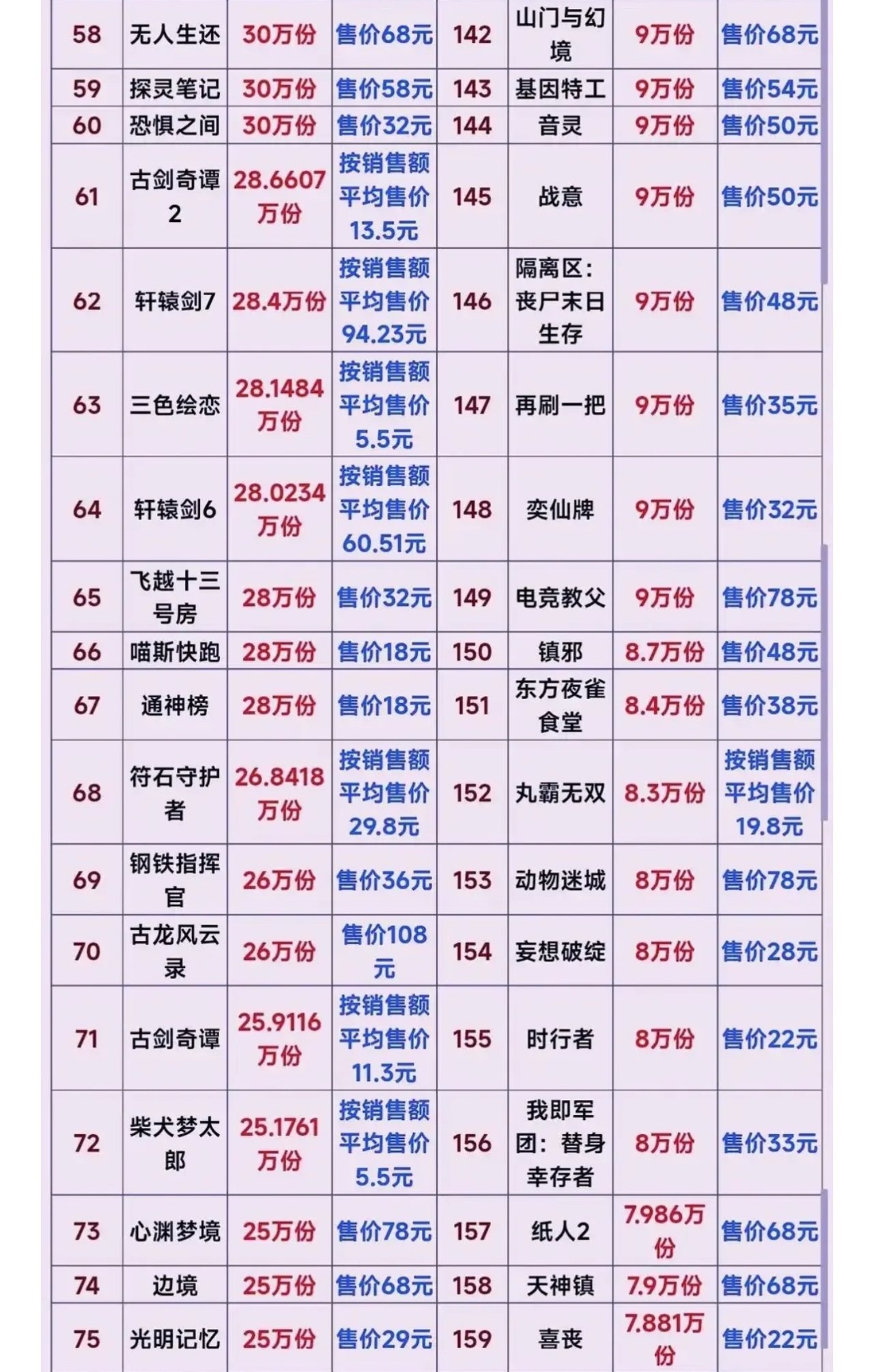 可能有人對於3000萬銷量沒有什麼概念,因爲一些手遊的流水一個月就好幾十億,整個黑神話悟空總銷才100億左右,但是當你看了整個國產單機銷量的時候就知道黑神話悟空到底有多牛了,不敢說後無來者,只能說前無古人系列。直接拉開第二名5倍還要多,更別說是第三名後面的了。