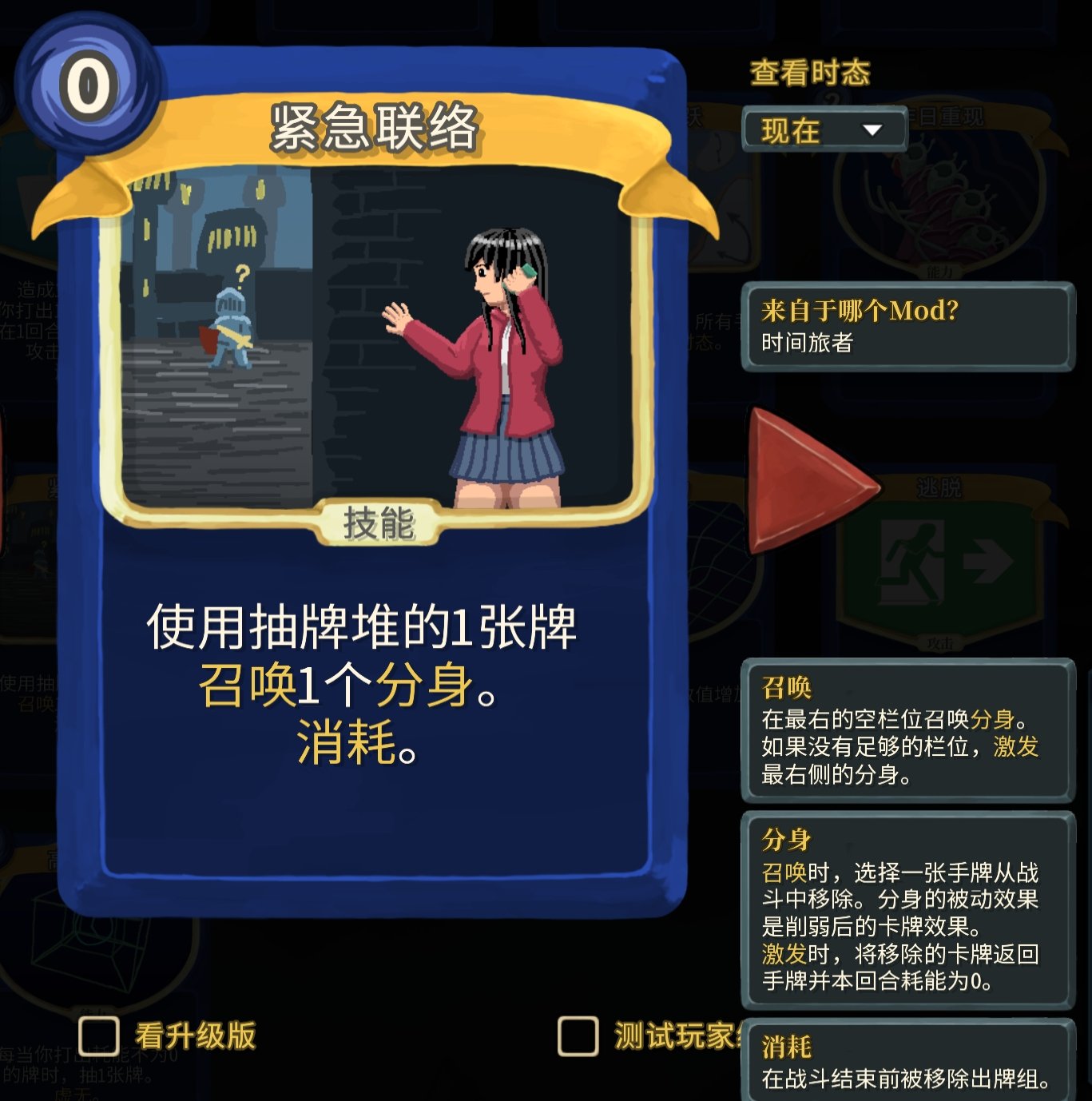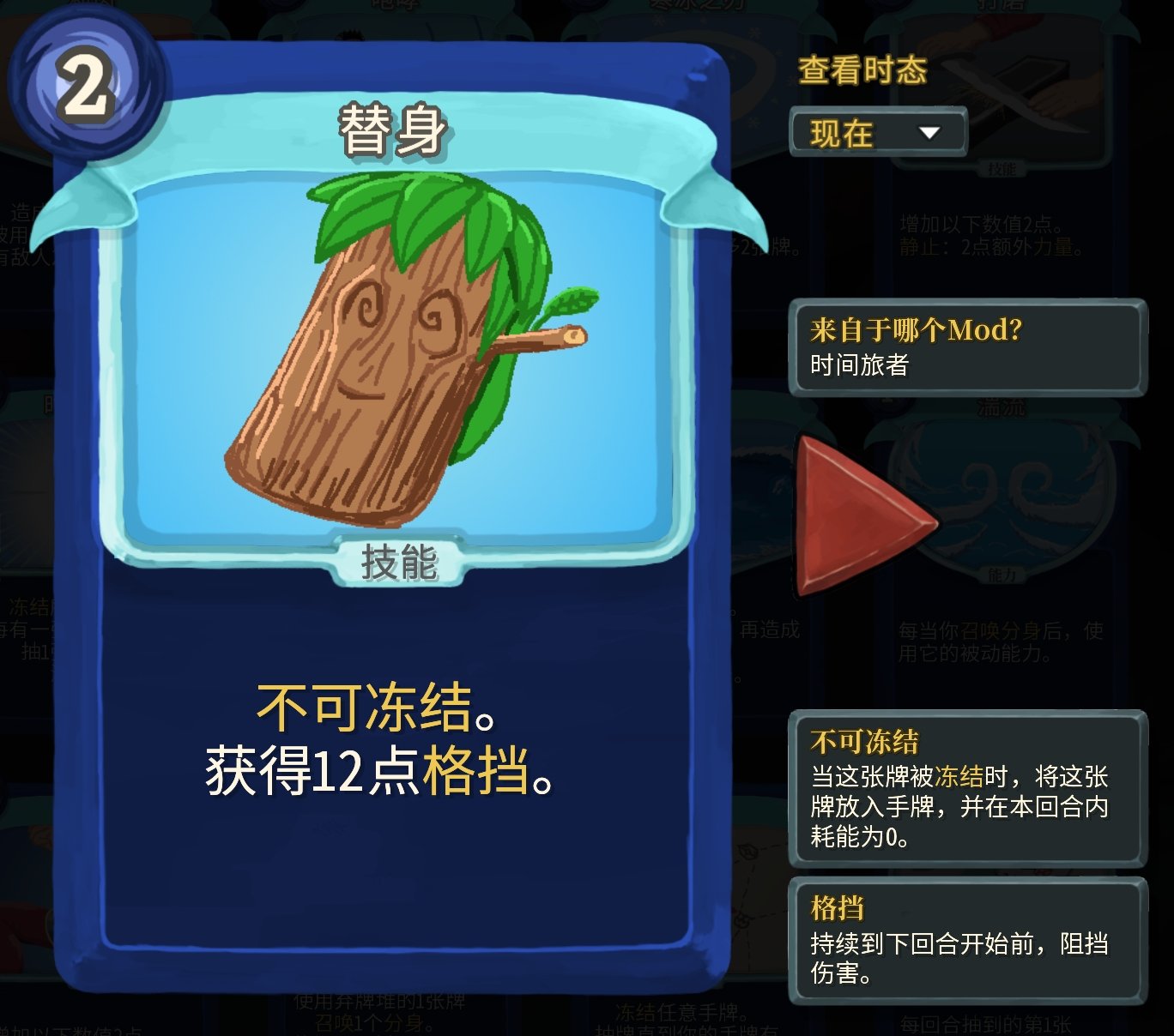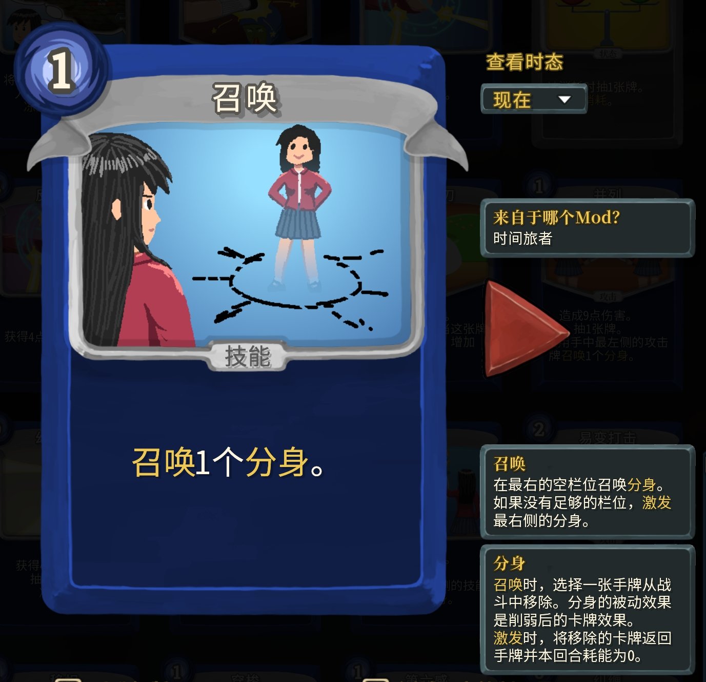 這個時態就是我說這個mod其實有無數的衍生卡牌的原因——每一張卡都有過去時態和未來時態(其實也就是一個噱頭而已)