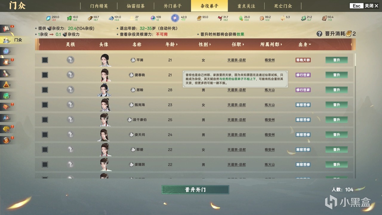 因为他就像是一个真正的修仙世界一样,我们把他当作是一个大的节点即可,而在节点发生前,我们需要做的就是提升自己,面对需要战斗的任务是,不需要战斗的任务更是,你无需担心右上角显示的debuff,例如宗门吸引力不足、门内精英弟子不足等等,前者完全无所谓,而后者真需要精英弟子你再去从外门弟子晋升几个资质好的弟子即可。没必要给自己添堵。