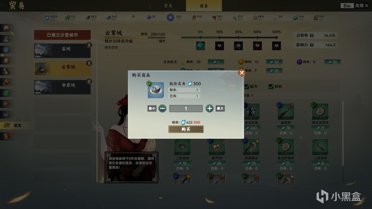 解锁城市不单单是解锁交易,还可以知道该城市贩卖的道具,在前期我力推灵舟和