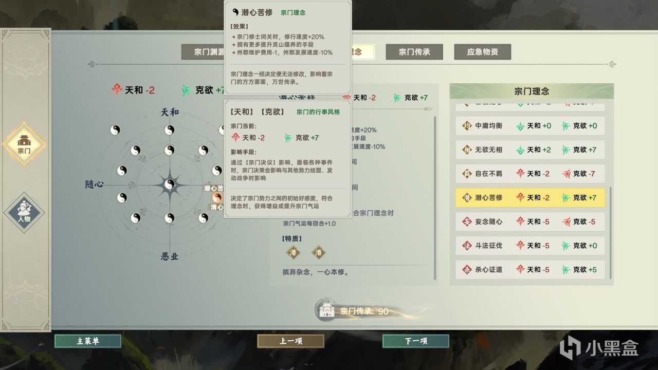 2.掌门的实力和潜力也是同理,你不用再牺牲掌门的特质,去选择一些虽然影响不大的debuff来获得更多点数,现在我们可以令掌门成为真正的修仙老登。