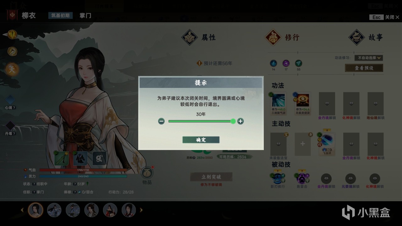 关于外出探索的小队,这里建议等灵石可以运转的几回合后,再建一只,这次直接闭关掌门出山,带一个,而原先的两个天灵根弟子踢一个回宗门闭关,这样做的好处就是,修为差不多够了,但历练不足的掌门可以补充历练,而前面的天灵根弟子光是历练足够,而修为需要提升,回宗门是一个很好的选择,剩下的一个继续带新人即可。