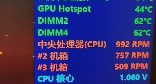 在测试期间可以看到,温度持续来到了62度,这个数值对于电脑里其他硬件不算高,但是对内存来说却是挺热了: