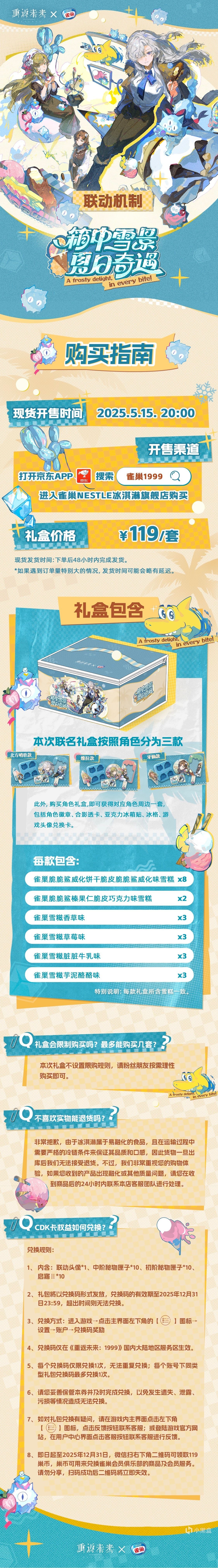 購買指南:5月15日20點打開京東APP搜索“雀巢1999”進入雀巢NESTLE冰淇淋旗艦店購買,禮盒價格:119元