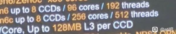 Zen 5部分,CCD採用4nm工藝,每顆芯片內最多16個,每個CCC 8核心,總計最多128核心256線程。