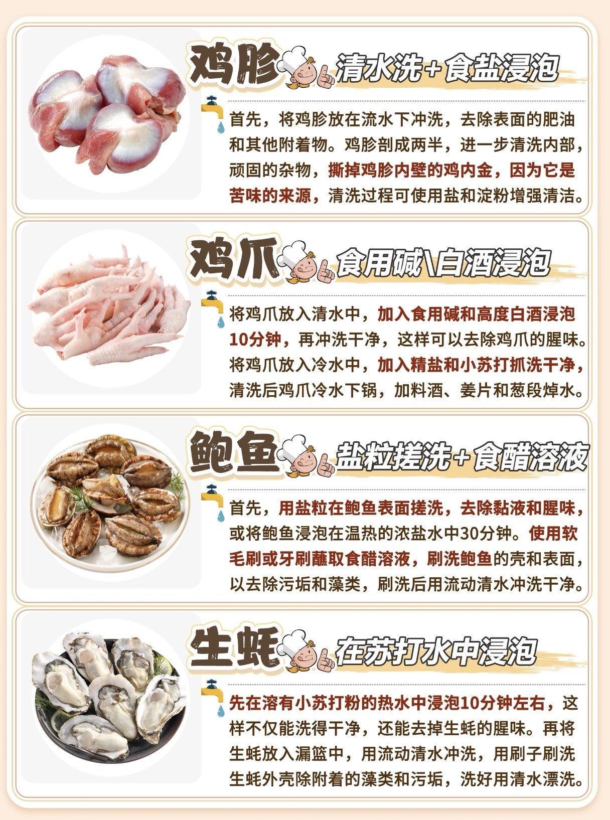1️⃣2️⃣生蚝:在溶有小苏打粉的热水中浸泡10分钟
