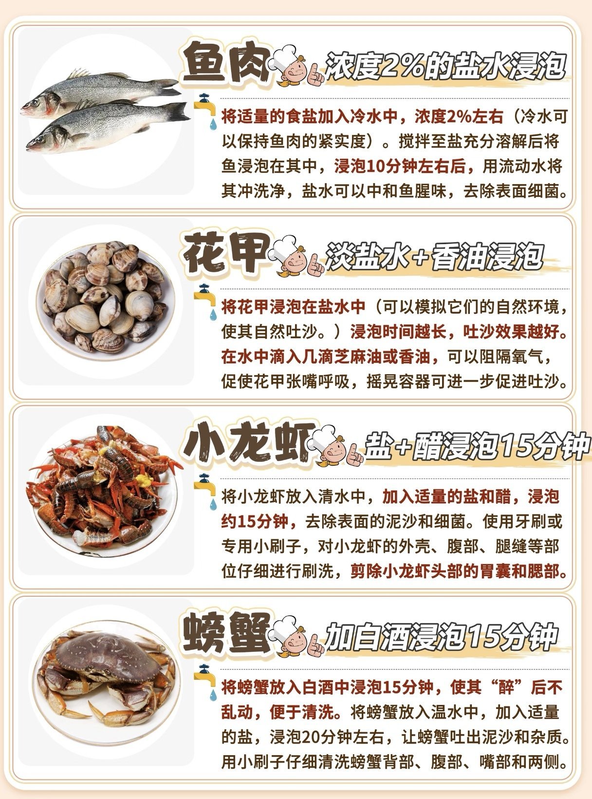 1️⃣6️⃣螃蟹:白酒浸泡15分钟,温盐水浸泡20分钟