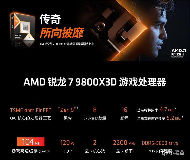 9800X3D自然不必說了。在TSMC 4nm FinFET和新一代3D V-Cache加持下,從誕生起就站到了單CCD最強遊戲CPU的位置上,甚至於過往X3D低主頻的問題都得到了解決,加速頻率來到了5.2GHz,L2+L3緩存更是來到了恐怖的104MB。