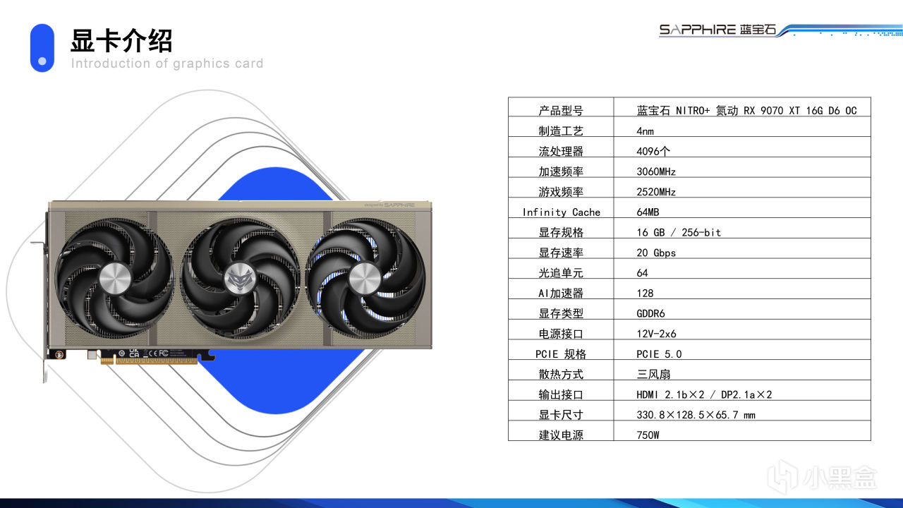 而整個9000系,最讓我驚豔的就非藍寶石RX9070XT氮動莫數,背後開槽藏線並採用12V供電的大膽設計實在是太過優秀,三角形組成的蜂窩狀外觀元素也和上面提到的B850M氮動形成了統一,如果能和主板採用了同樣的藍色就更帥了。