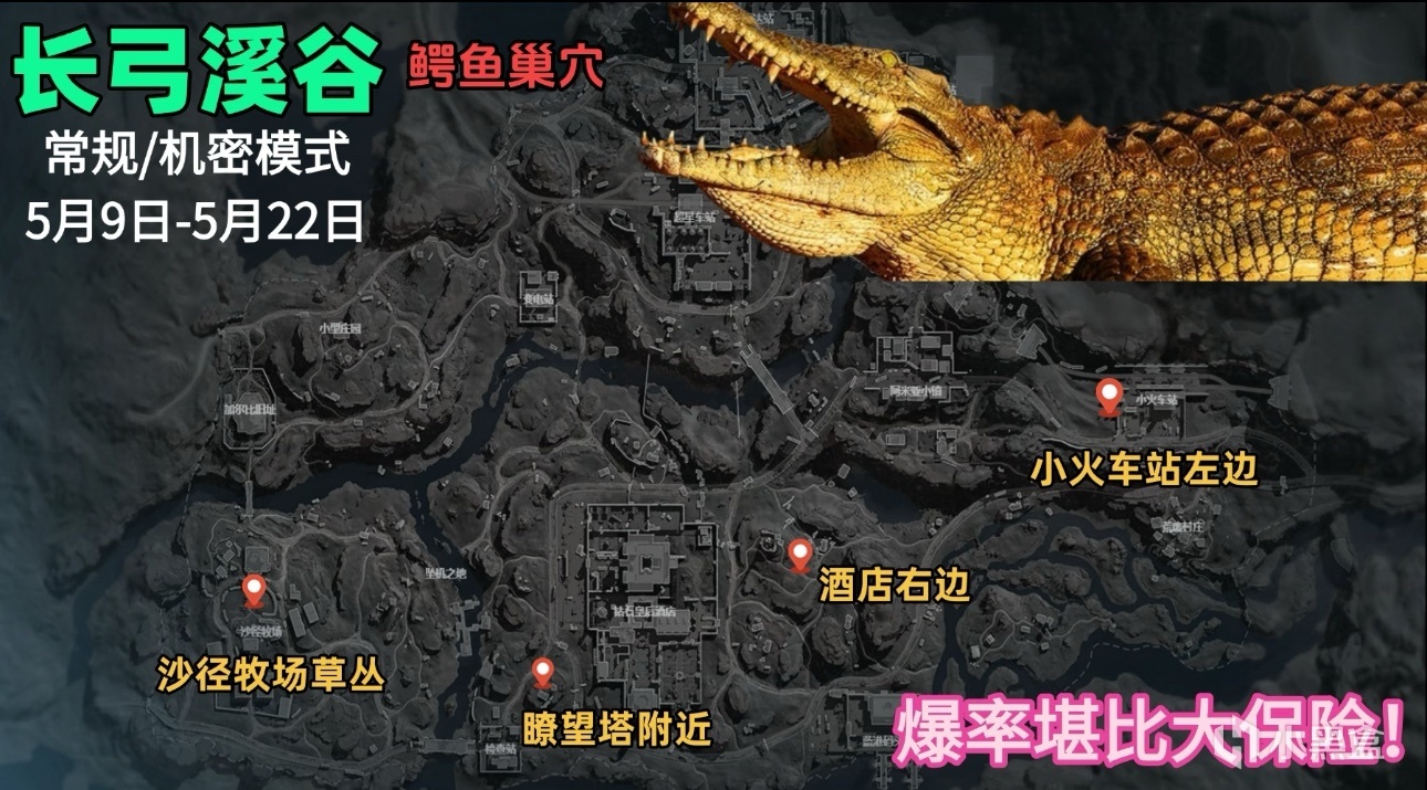 另外新活动“鳄鱼入侵”也已经上线好几天了,在长弓溪谷和零号大坝这两张地图的普通和机密模式中,会额外出现鳄鱼巢穴,里面出大红的概率非常高!🐊不过一定要记得先清理周围的鳄鱼再去摸蛋,否则死亡翻滚直接送你回特勤处!