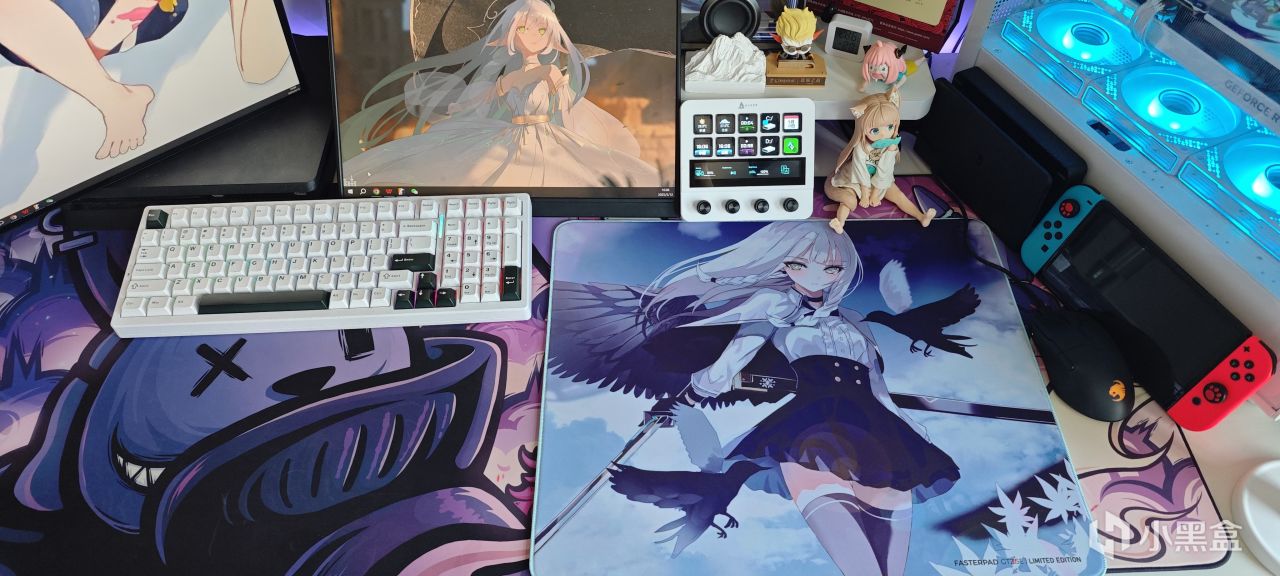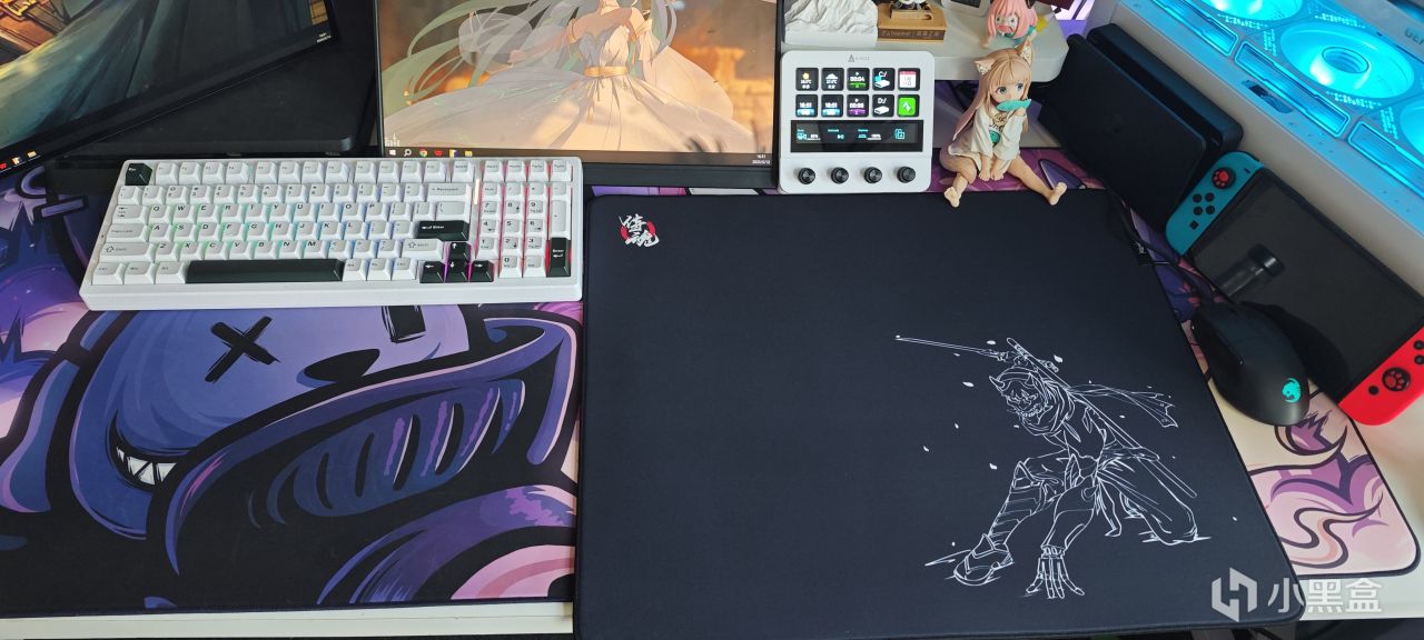 這是第一次跟水月雨合作的FPS鼠標墊,用的是水月雨家的水月友希爲圖案設計。顏值非常不錯,圖案非常精美。表面親膚偏澀,控制力比較強。送了一些周邊。