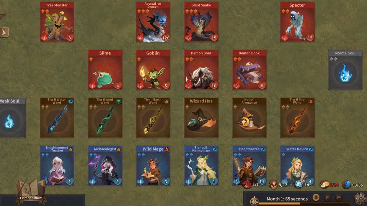“卡牌+模擬經營”,有些像魔法題材的《堆疊大陸》。這類遊戲和《文明》一樣,一旦開始就停不下來。遊戲裏有魔法儀式召喚的玩法設定,感覺如果能召喚的怪多一些並且,支持非公式化的隨機召喚,遊戲會很好玩。