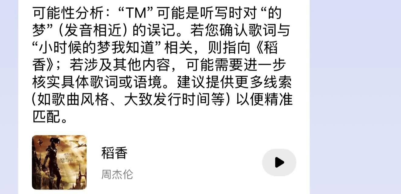 它找對了歌名、說對了來源,可給我曬出來的卻是另一首歌...