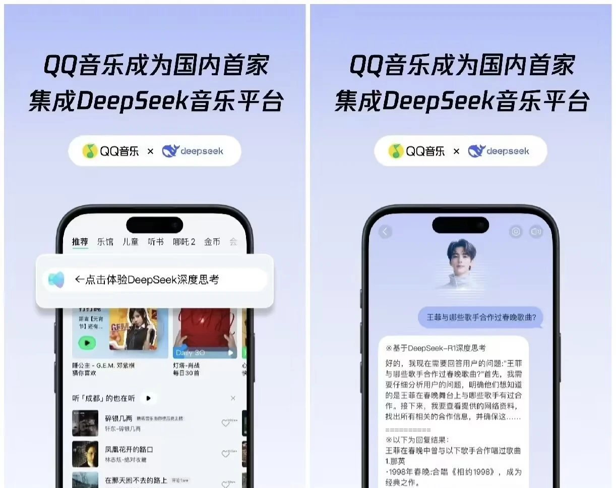 所以,當lz突然看到,就連濃眉大眼的「QQ音樂」,居然也悄咪咪地接入了滿血版「DeepSeek-R1」的時候…