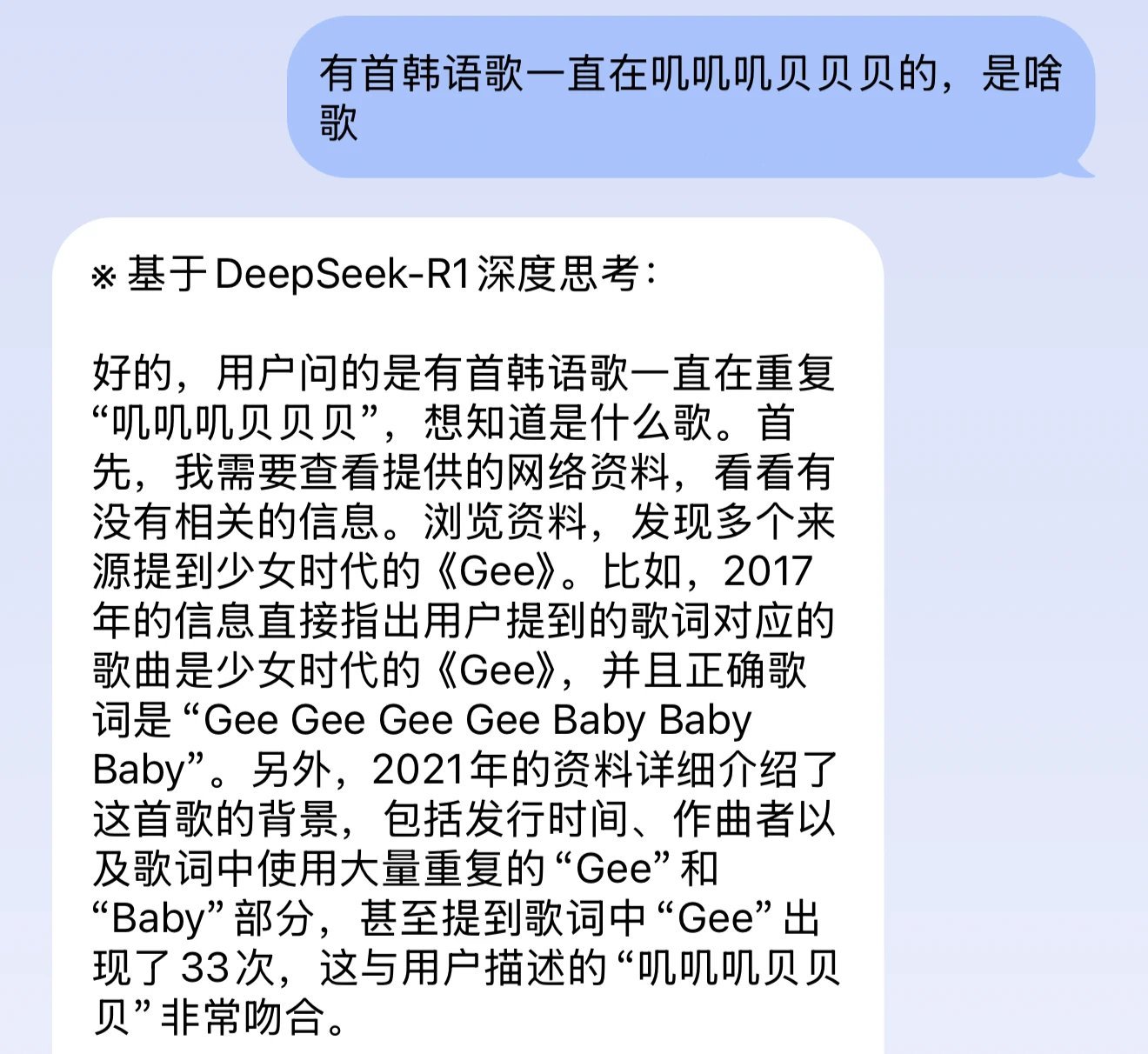 另外,我發現「DeepSeek」雖然在大多數時候,都能把咱們想找的歌曲給翻出來。