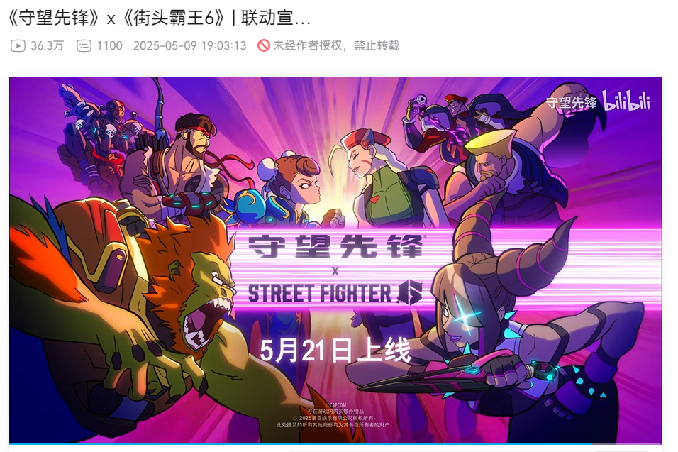 5月9日,《守望先锋》官方公开了将于《街霸6》进行联动的宣传预告片。