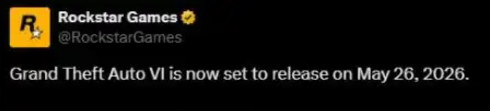 R星宣布因避免“高压开发”等原因,将游戏延后至2026年5月发售。