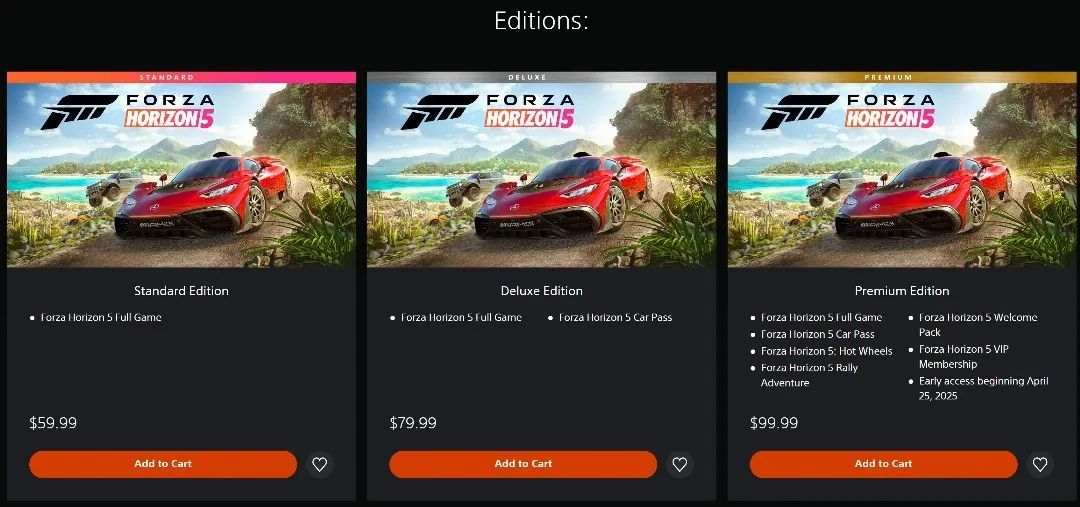 隨着地平線5在4月29日正式在PS5上線,風向倒是發生了明顯的變化——遊戲上架後在幾乎所有地區的暢銷榜登頂,根據多家分析公司的估算,PS版地平線5的首周銷量至少突破百萬份,且依照此前的預購榜排名來看,購買99.99美元“頂配版”的玩家反而是最多的,畢竟這個版本中包含所有的DLC、通行證和一些獎勵,售價相比要在Xbox或Steam平臺上買齊這些划算不少。