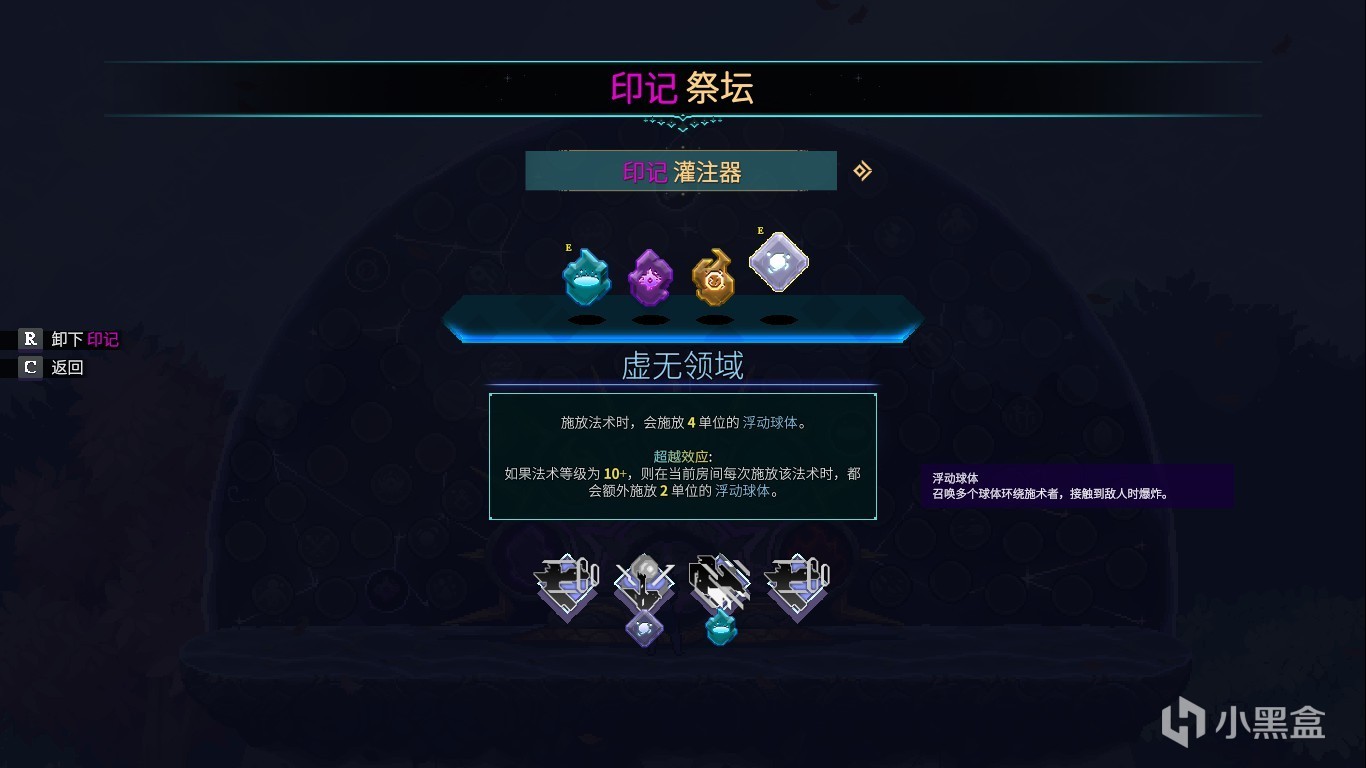 有要求的額外回聲,要求法術達到超限品質,也就是最高,能夠觸發下面第二條的額外面板,印記房選擇之後,無論是否裝配,都會進入到商店的祭壇中可供自由搭配,前提是獲取5張印記圖紙,除去BOSS必得,小怪也會概率出。