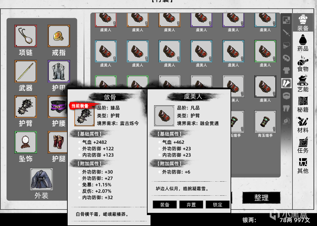 裝備沒有耐久度,不會損壞。其中有些,可能也暗含了製作組的小心思,例如下圖中的“虞美人”。