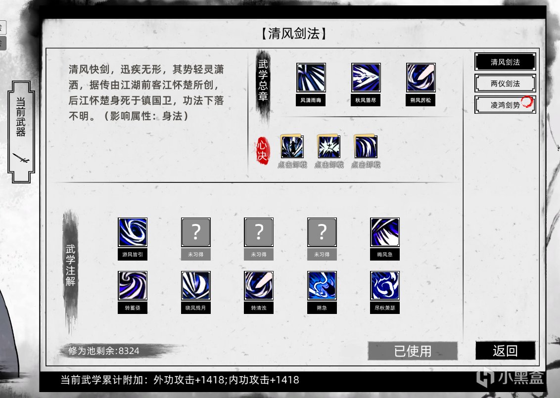 武學部分看似複雜,其實是一個較爲簡單粗暴的系統。