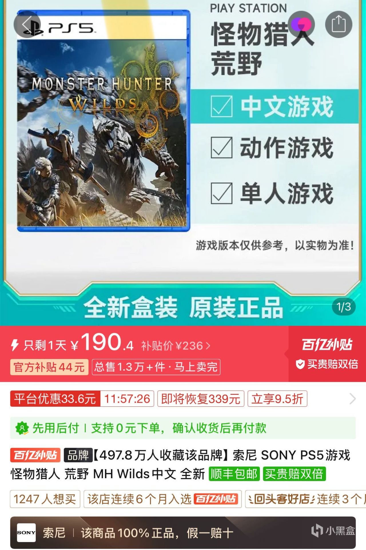 3.PS5《怪物猎人:荒野》港版中文190.4元顺丰包邮,感觉再过一个月全新价格可以崩到160左右,卡婊的游戏不急着入首发,等更新完全再买是性价比最高的,荒野散装限定版(游戏,铁盒,玩偶,布袋)现在也就500元不到。