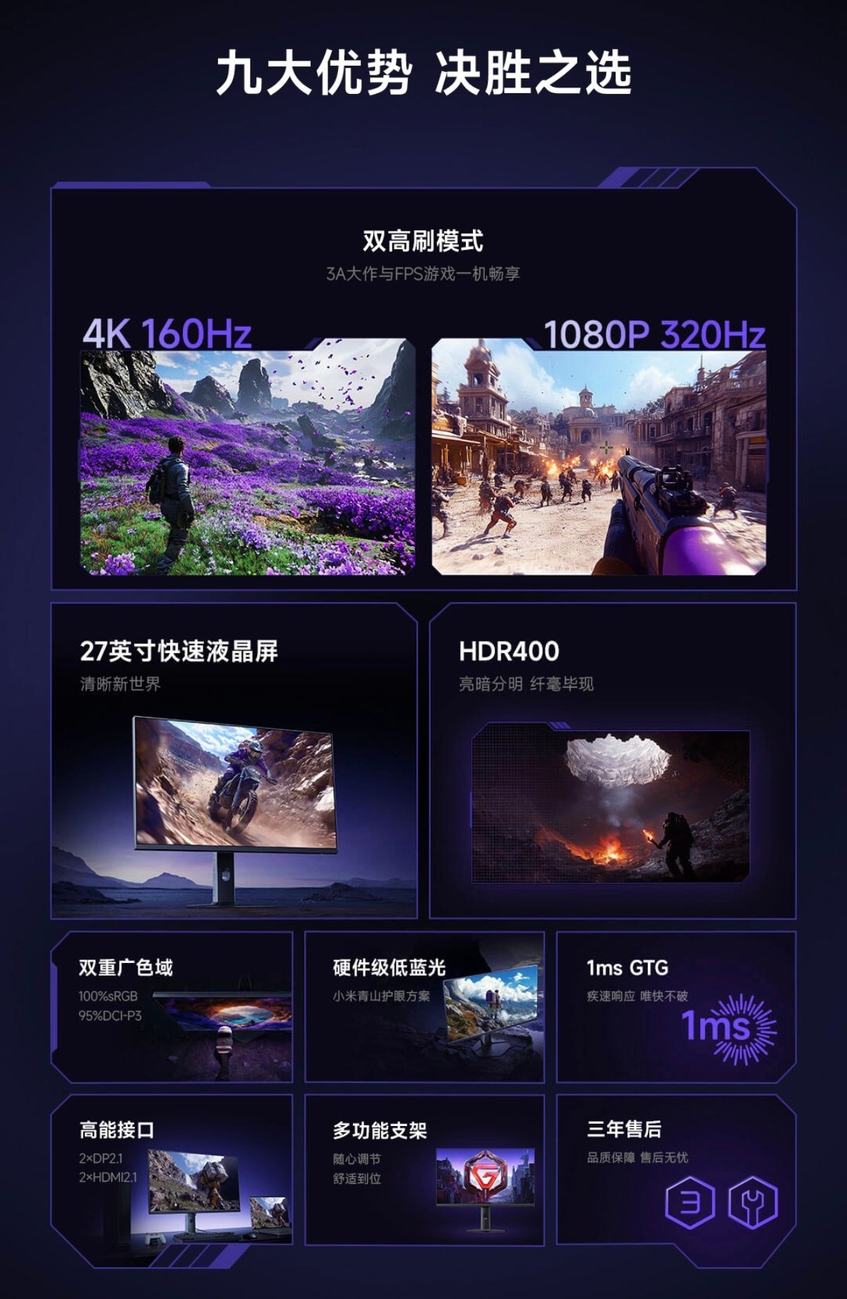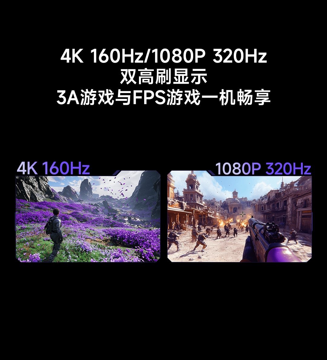 双高刷模式:原生4K 160Hz|1080P 320Hz