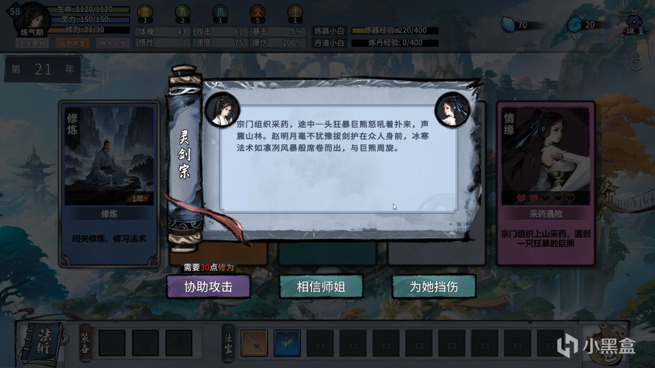 還有情緣事件,如果在師姐被圍攻的情況下,你的修爲不足30將無法幫助師姐突圍,但如果你的修爲達到30以上,就可以幫助突圍讓師姐好感度+1。