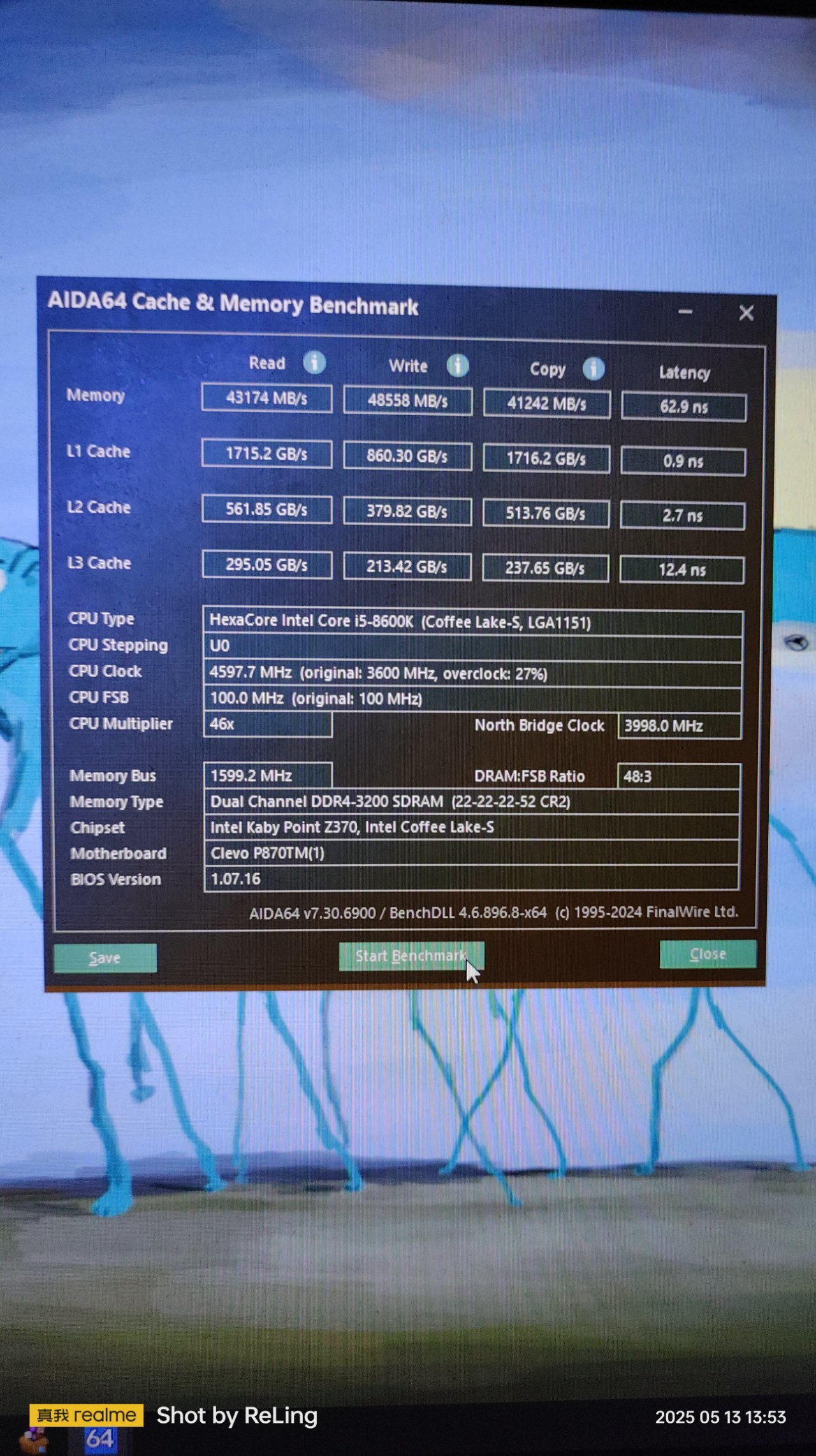 首先打开aida64,找到内存与缓存测试,打开它,点击start benchmark,进行3次测试,确保三次成绩相差不大,可通过拍照对比,由此可视为缓存频率稳定