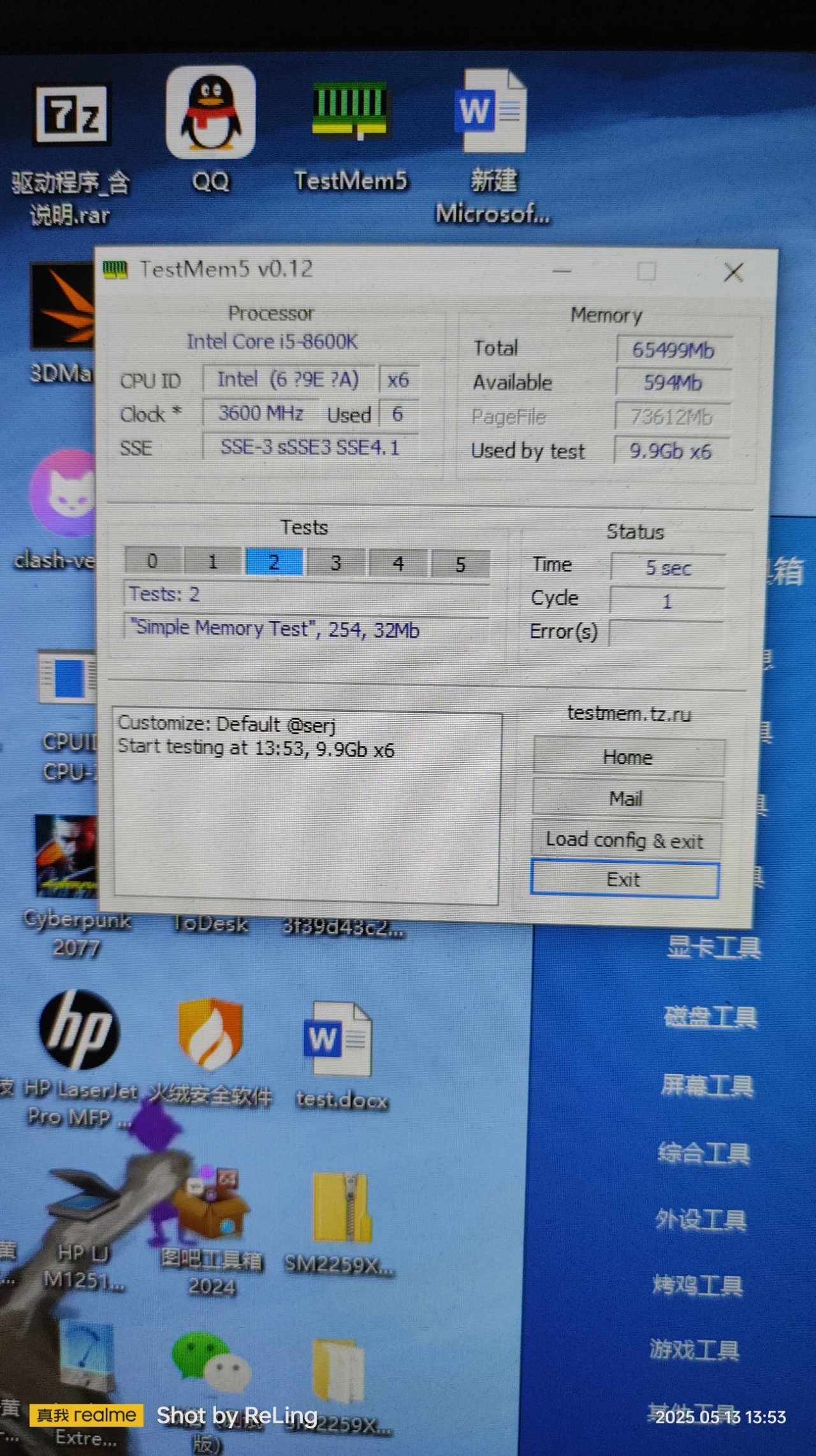 此软件旨在测试内存稳定性,打开即自动加载内存测试文件,三圈无报错提示no error即视为内存稳定。若软件无法正常跑圈,持续弹窗,请关闭软件,重启电脑后以管理员身份运行。