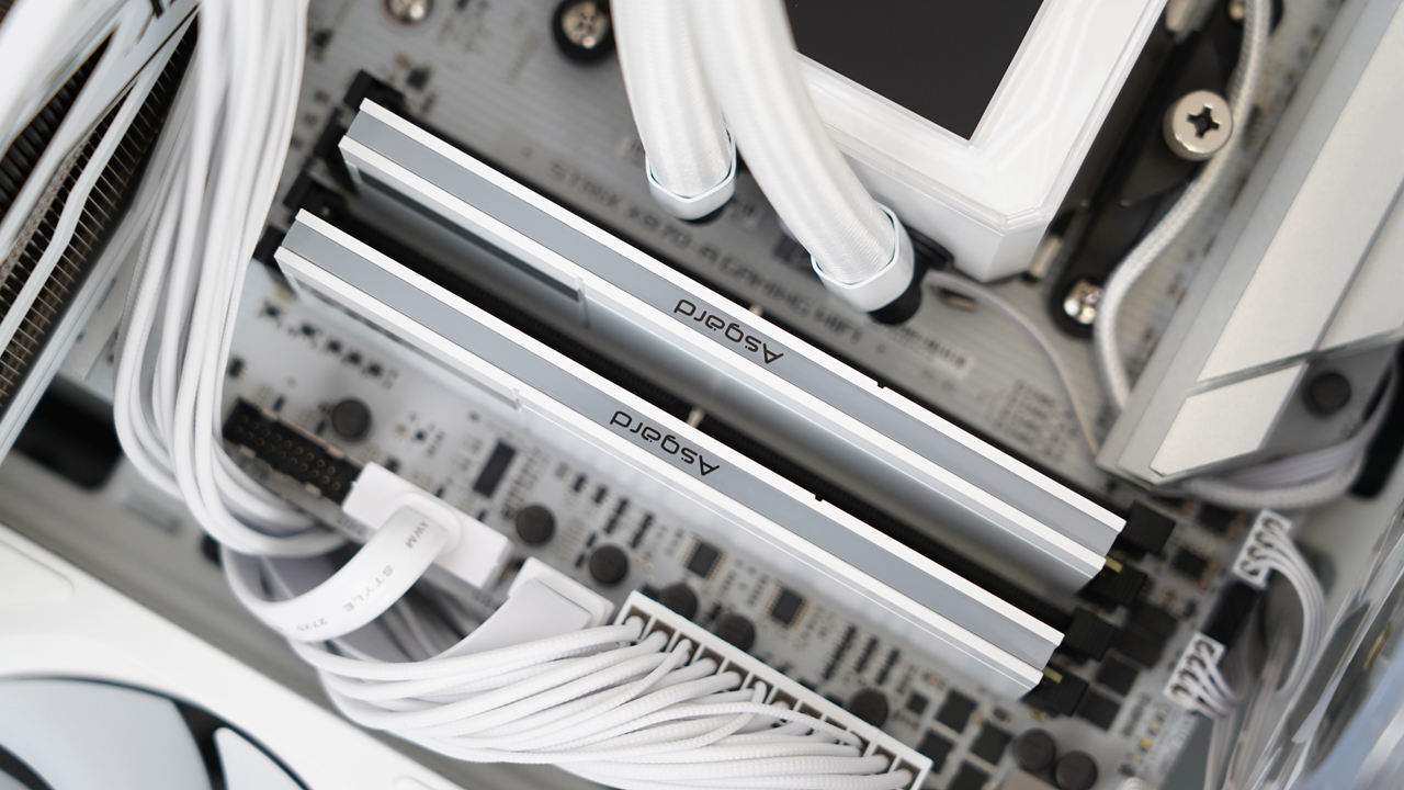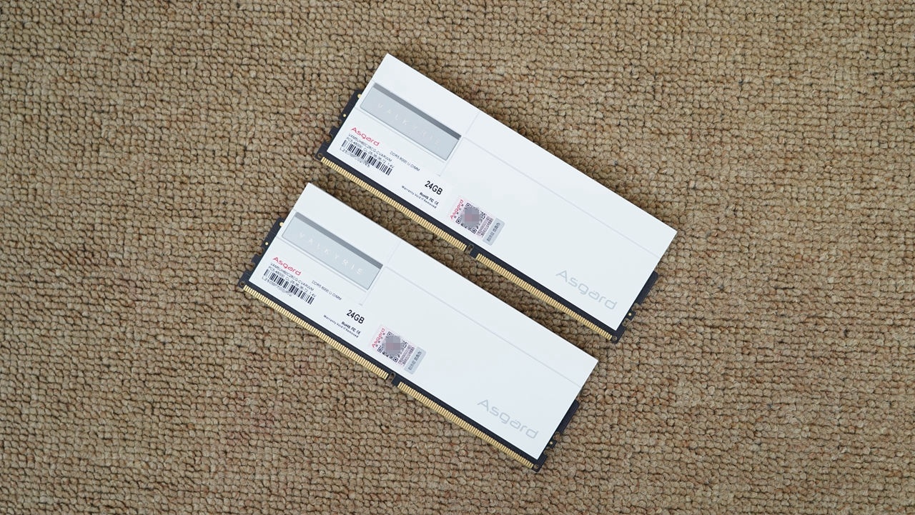 正好近期三哥就體驗了一款很有特色的內存——阿斯加特 DDR5 6000 48GB(24GB×2) 女武神·瓦爾基里II代 RGB燈條,該內存擁有6000MHz的EXPO頻率,同時時序低至C28,性能優勢十分明顯;同時該內存採用海力士M-DIE(3Gb)顆粒打造,超頻潛力巨大,所以也非常適合我們將其超到8000MHz來驗證其高頻下的性能表現;內存還採用了2mm加厚散熱片,能夠有效降低溫度,進一步提高內存工作時的穩定性,配合其白色外觀和Amicc燈珠加持,可謂是裏子面子都可兼得。下面,就讓三哥通過對比實測來告訴你答案吧。