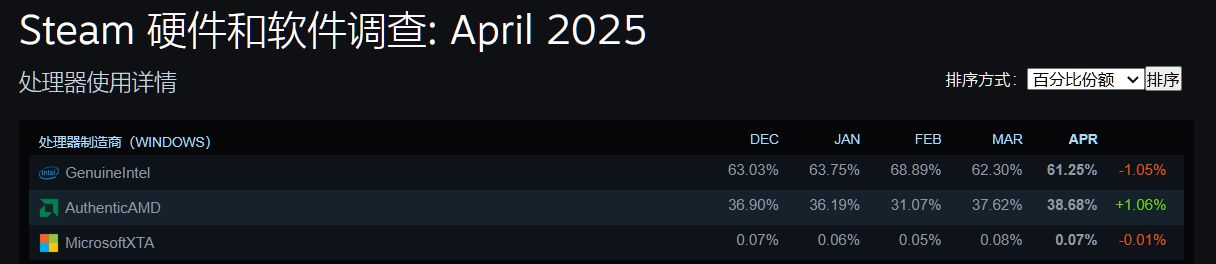 不得不说牢英是真牛逼,市值被AMD反超三倍,但steam的占有率依旧保有63%: