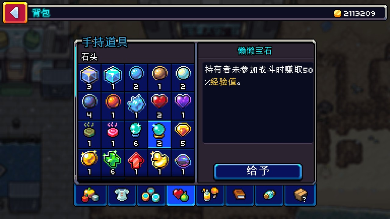 圖中發光區域道具爲懶惰寶石,其左邊爲悠閒寶石,其右邊爲智慧寶石