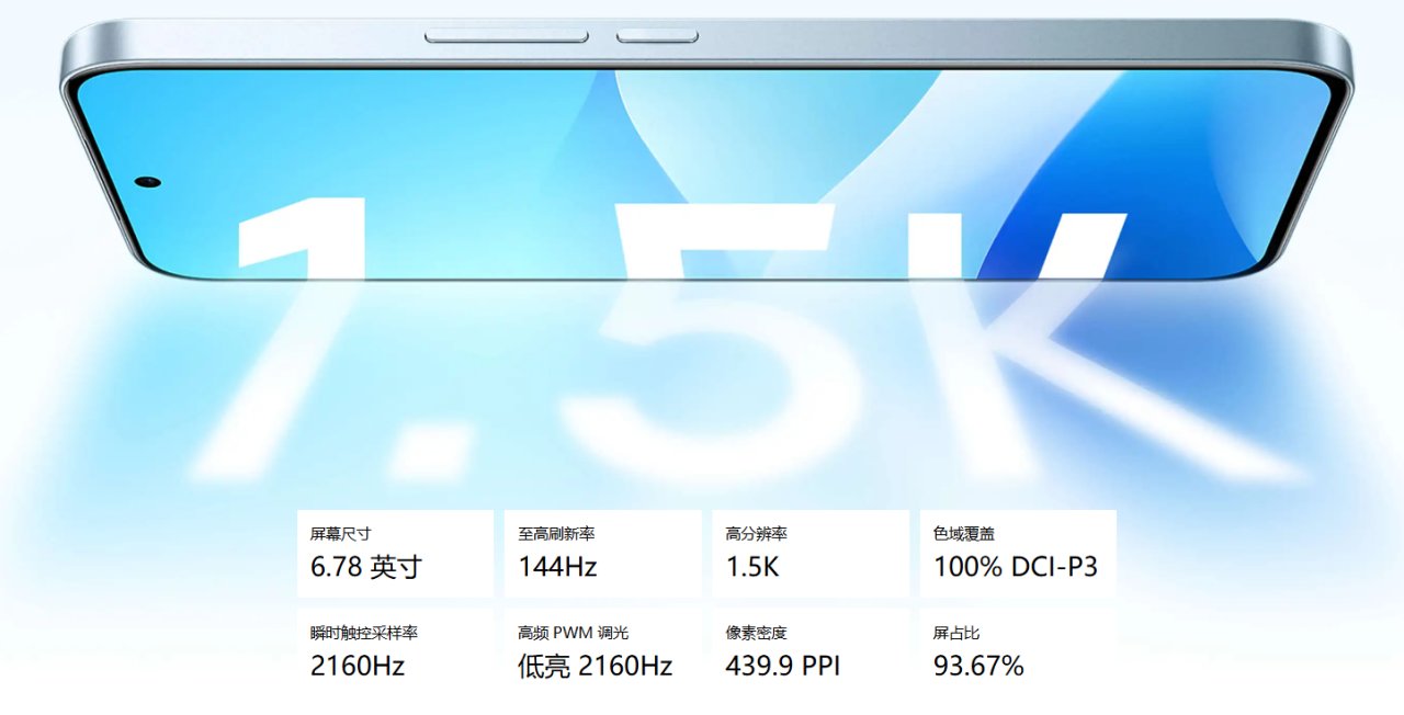 屏幕:6.78英寸 1.5K 120Hz OLED直屏,支持2160Hz PWM調光;