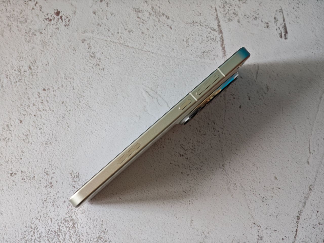 另一側的中框上,經典的三段式按鍵做了調整,做成了按壓式反饋的按鍵。