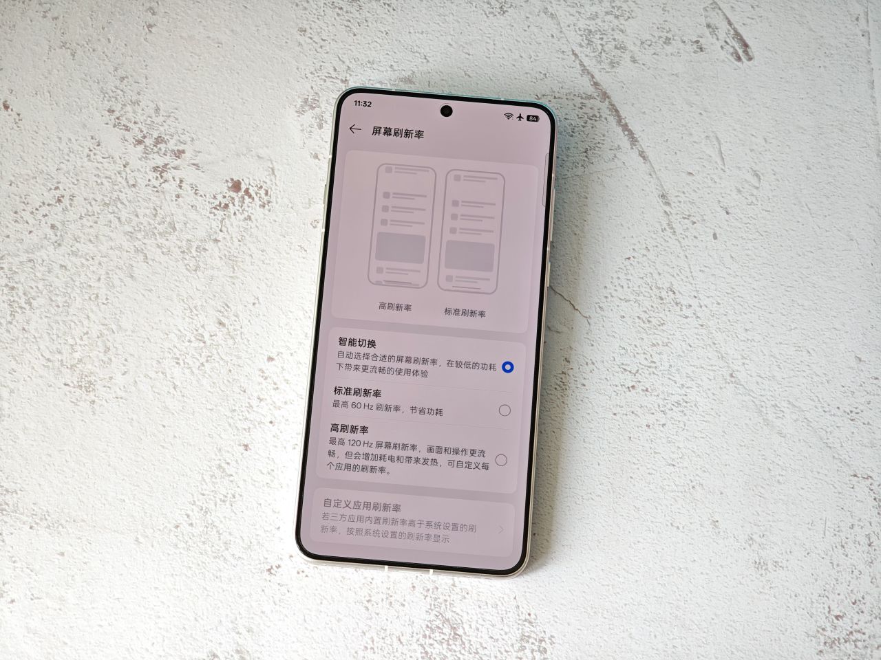 Ltop支持1-120Hz,也可以選擇全局120Hz刷新率,就是功耗會比較高。支持爲APP單獨設置刷新率,這一點非常人性化。