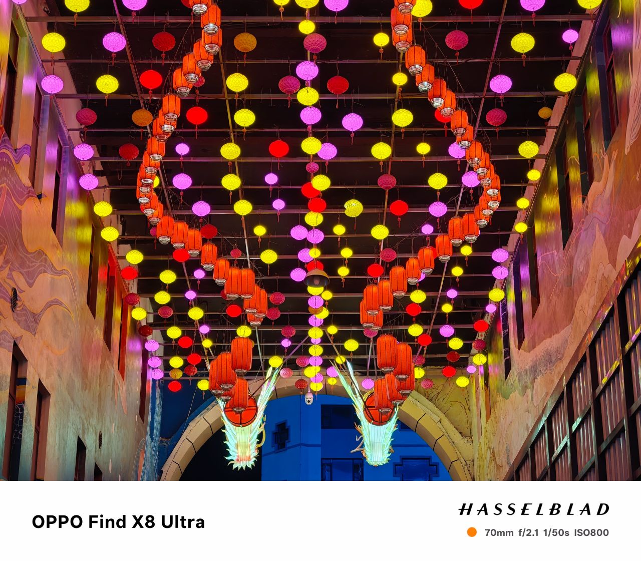 3倍長焦表現尚可,摳點細節,就是遠處黃色的燈籠,受限於高光壓制的能力,細節出現了丟失,糊成了一團黃。