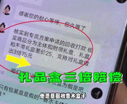 該平臺回應:該香水由品牌授權經銷商銷售,品牌倉庫直髮。用戶再次出售時,平臺二次查驗確認香水爲正品,但禮品包裝細節不符正品特徵,故攔截商品。已終止涉事商家合作並和用戶協商,商品本身確爲正品。