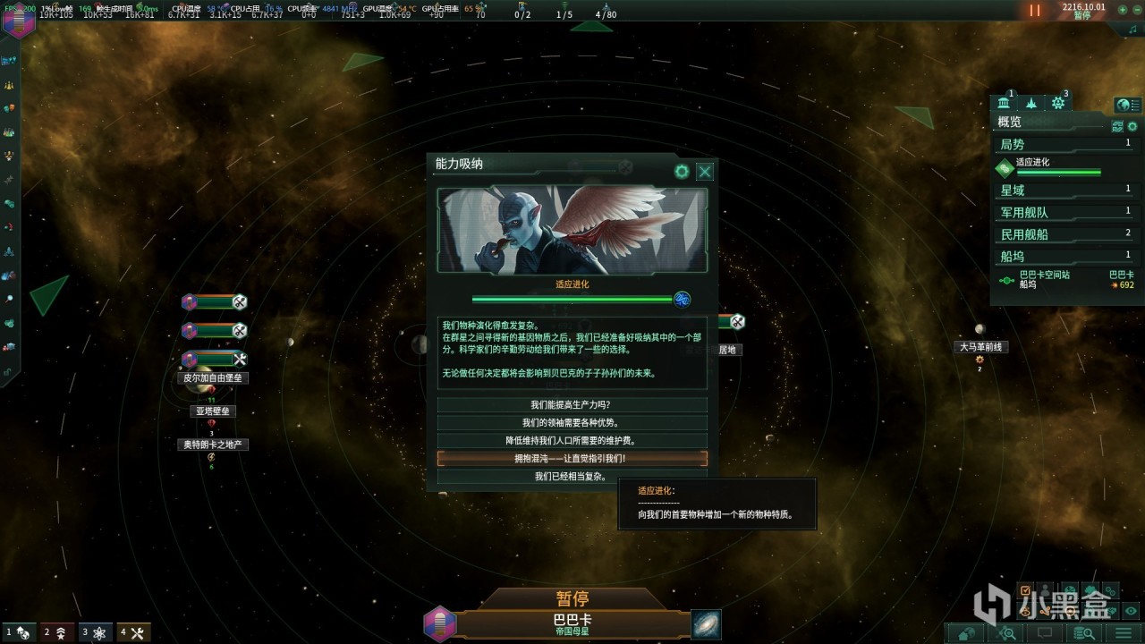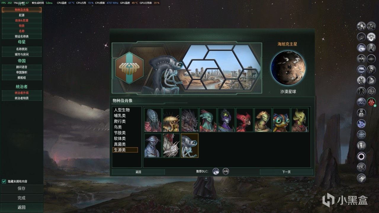 進入遊戲我們就可以看到全新的介紹,首先是禁用除變異飛昇以外的所有飛昇路線。該物種受自己都無法完全理解的直覺所驅使着,永遠都在追獵最獨特的生物。他們獨有能整合獵物基因的能力,因此演化成了母星上最頂級的獵手,應有盡有地吸收了所有的優勢基因。如今,這種渴望又將他們帶向了羣星。這個是我最喜歡的一種。