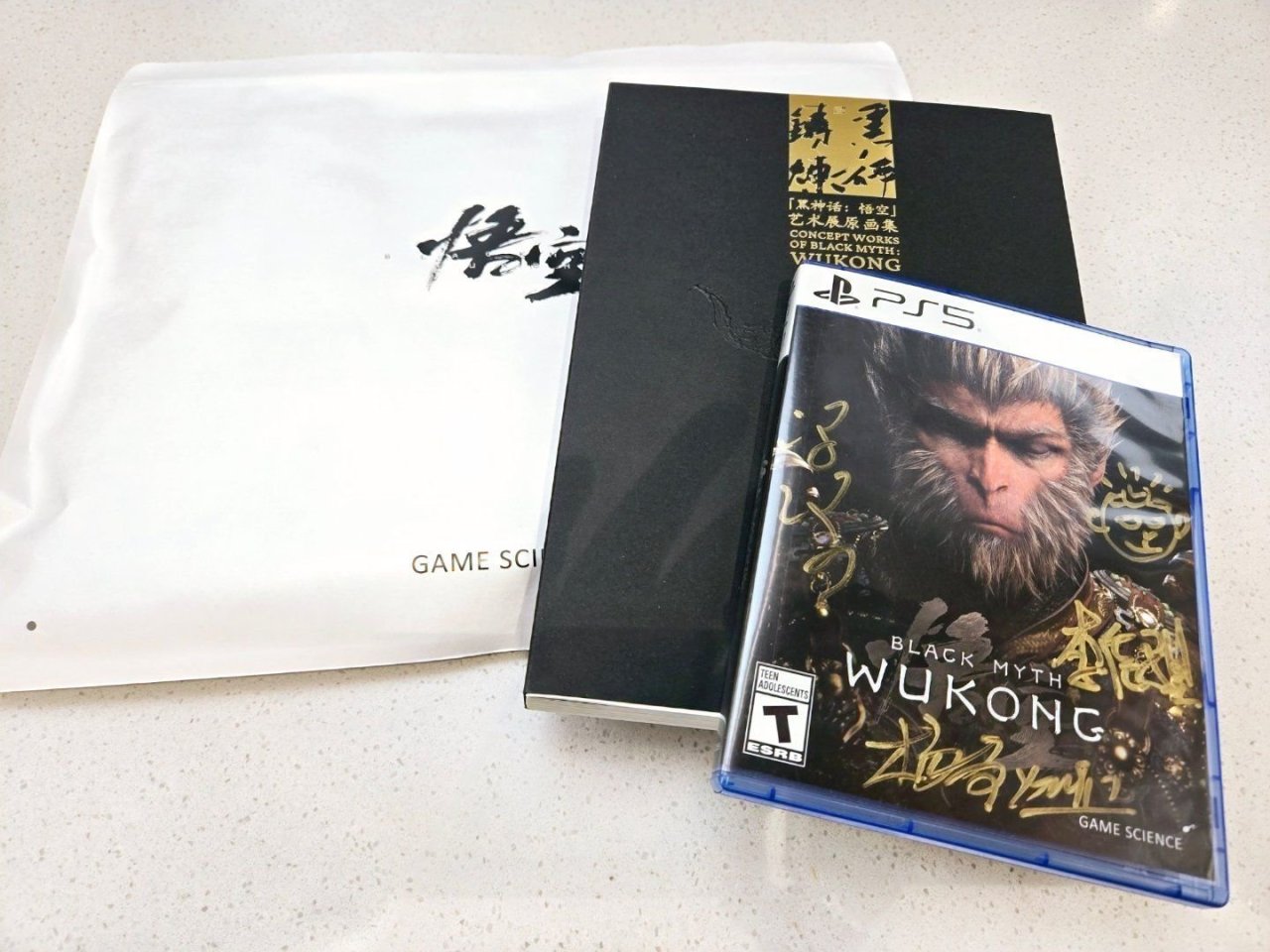 金亨泰在微博分享了游戏科学送给他的礼物,包括带有签名的PS5实体版《黑神话:悟空》,以及本次《黑神话:悟空》艺术展的原画集等。对此他表示:“衷心感谢Game Science!”