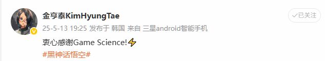 2025年5月13日,金亨泰在微博晒出参观《黑神话:悟空》艺术展的照片,并表达了对展品的赞赏。