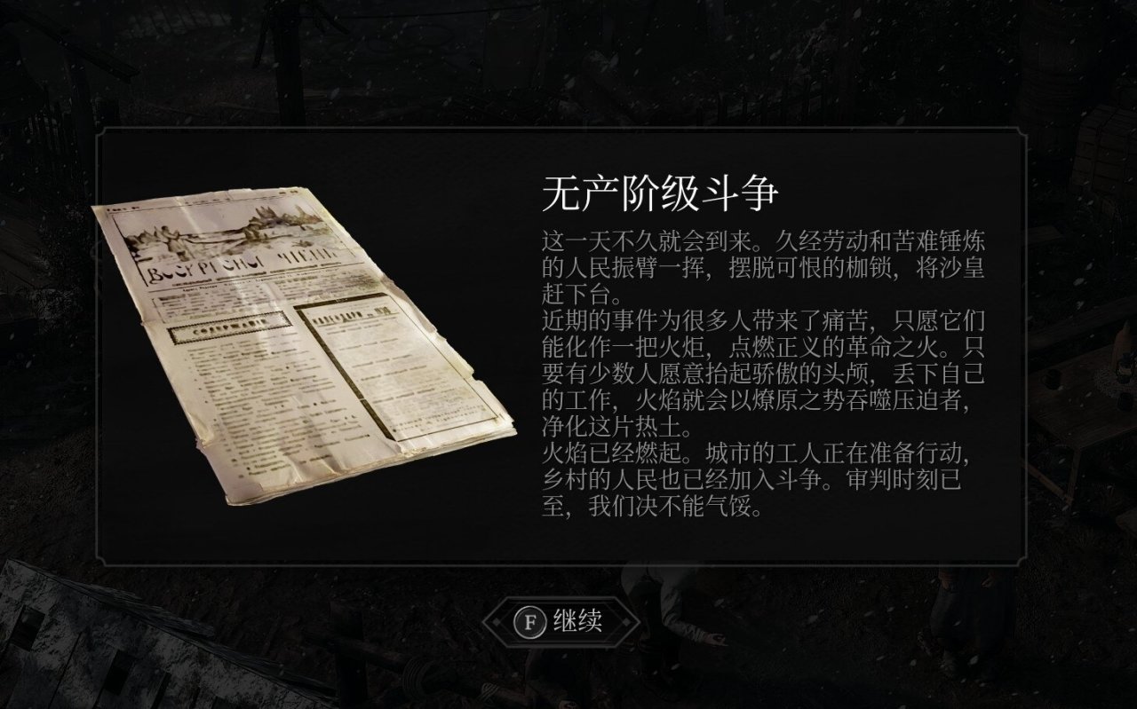 它对那个年代的表达实在太好了,20世纪初的波兰满载着小国对战争的恐惧,人民对于沙皇这种庞然大物的不安、愤怒和害怕于游戏里深刻地体现了出来。