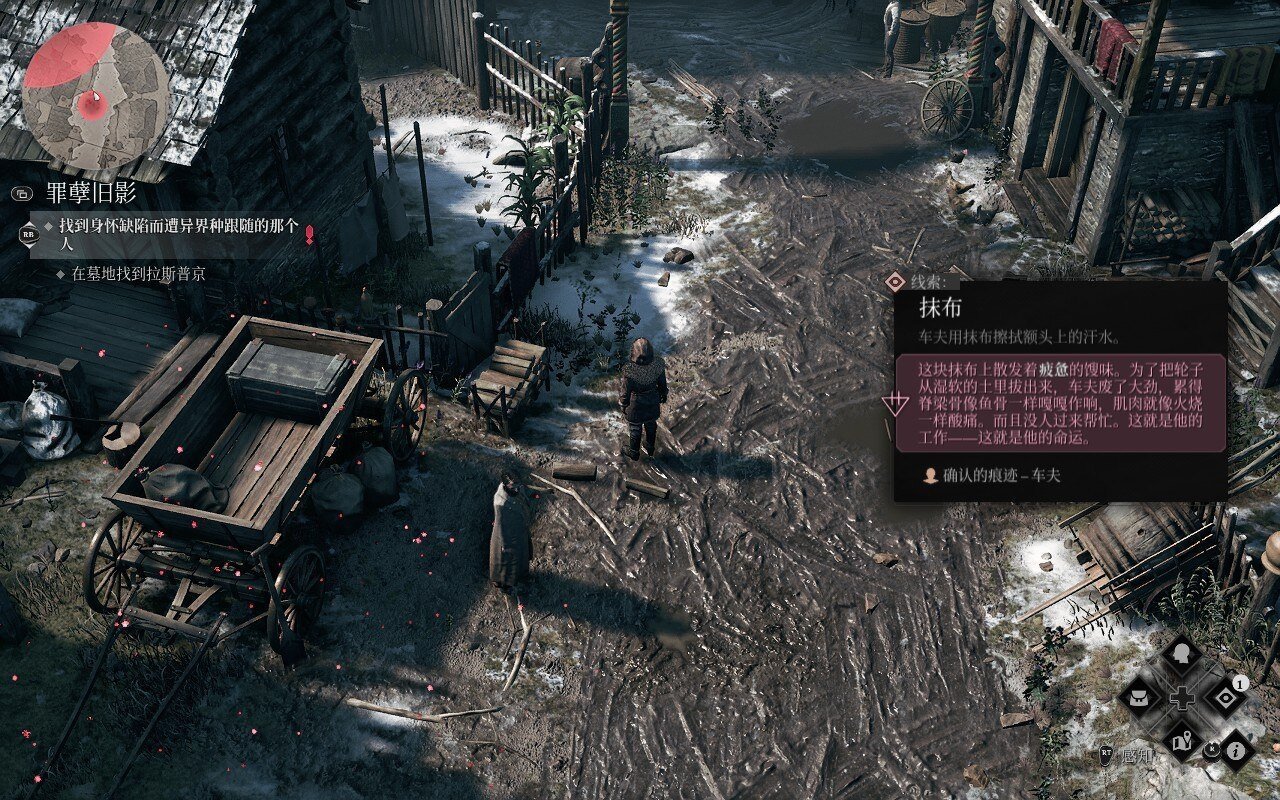 虽然可以无脑依赖感知的指引,但最优秀的地方在于每个任务都有多种解法,根据挖掘程度的不同、选择的不同、调查方向的不同能产生很多不同的任务结局,甚至对整个游戏的大走向产生深远影响。