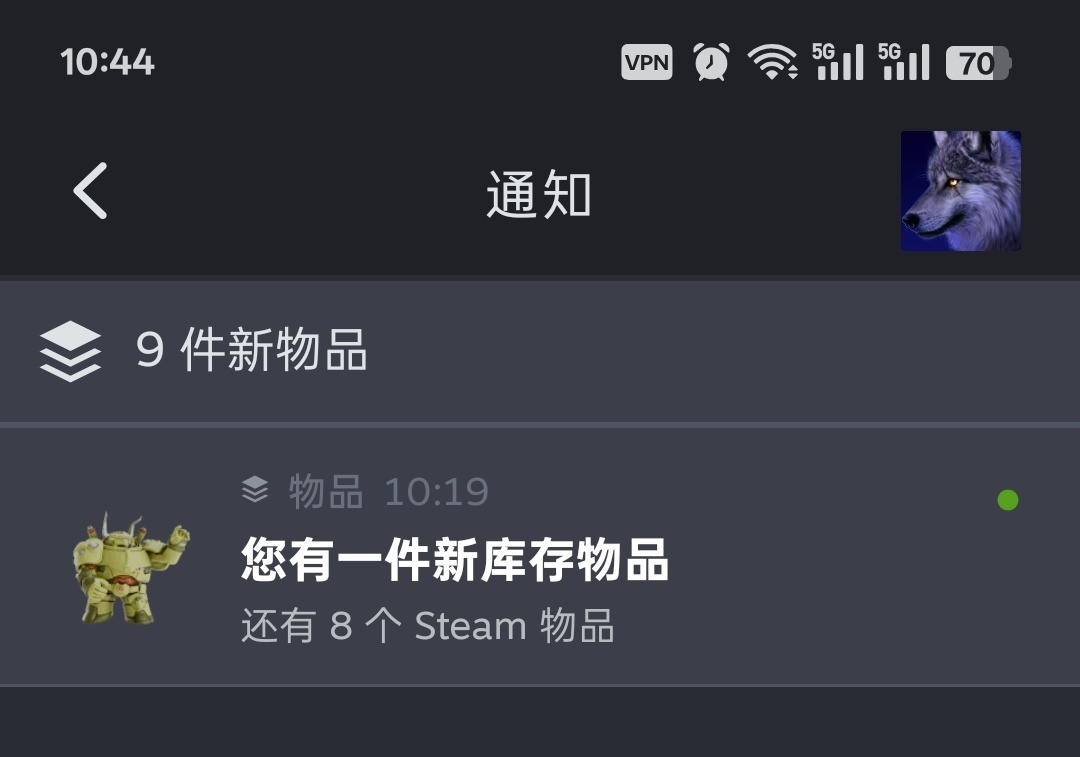 觀看十五分鐘左右會收到消息提示,多了9個新物品
