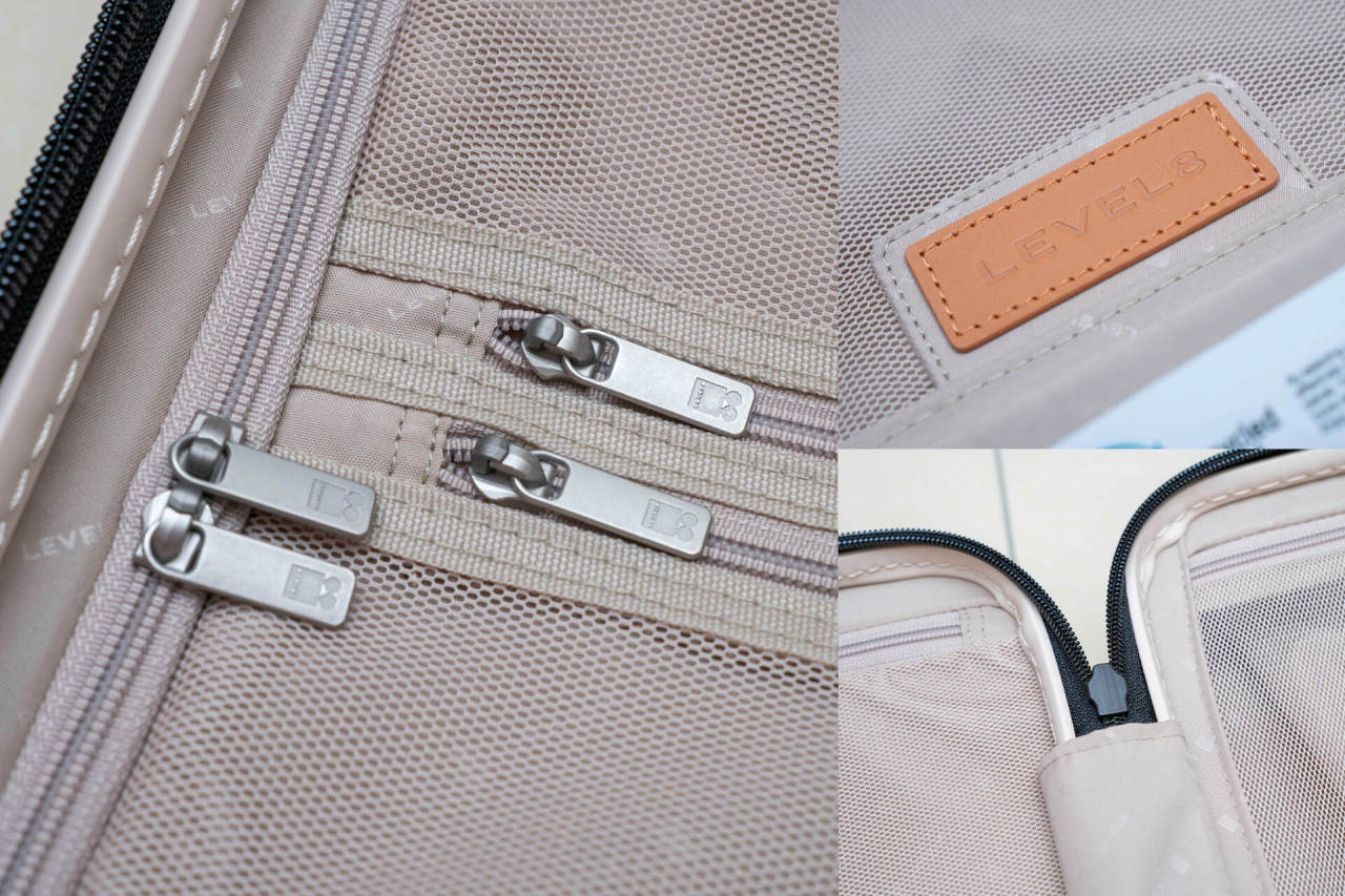 每款地平線8號行李箱的做工都不錯,針腳細膩,做工細緻,內裏是RPET環保里布,整箱拉鍊是「拉鍊行業鼻祖」日本YKK雙層防爆拉鍊,拉鍊耐用、順滑,就算是衣物塞得滿滿當當的,拉鍊好用很加分的。