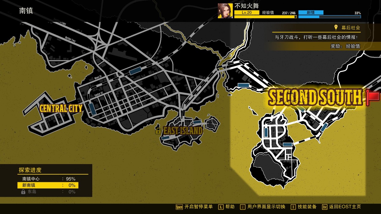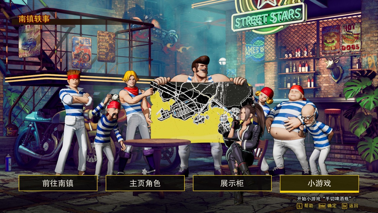 另一个剧情方面的玩法是南镇轶事,这个的内容体量就更为庞大了,所以入口直接放在了主界面左上角的醒目位置。南镇其实就是《饿狼传说》系列世界观设定下所有故事情节发生的地方——南镇不大,但遍地都是格斗界的神话。