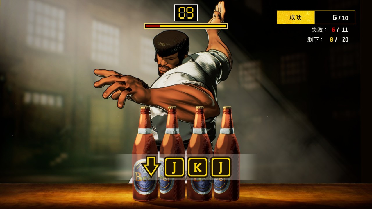 除此之外,南镇轶事还提供了一些额外的小玩法。比如展示柜功能以及画廊功能的解锁,玩家在南镇冒险的过程中可以解锁诸如角色对话、美术原画等情怀性质的、可以自由查看的周边内容。另外还有一个小游戏的功能,格斗游戏玩累了可以来试试这个QTE玩法的手切啤酒瓶,有简单、普通、困难三个难度供选择,嫌不够的话还可以挑战一次切100个来解解压。