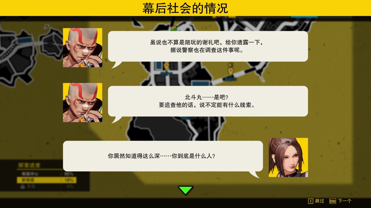 《饿狼传说》这个系列还有一大特点,就是剧情方面有丰富的内容,人物设定饱满,各个都是有故事的角色。这一点在《饿狼传说:群狼之城》得到了继承。人物小传和南镇轶事共同组成了对角色与故事的刻画与叙述,让玩家沉浸到这个经典IP的世界中,而不仅仅只是搓招打架。